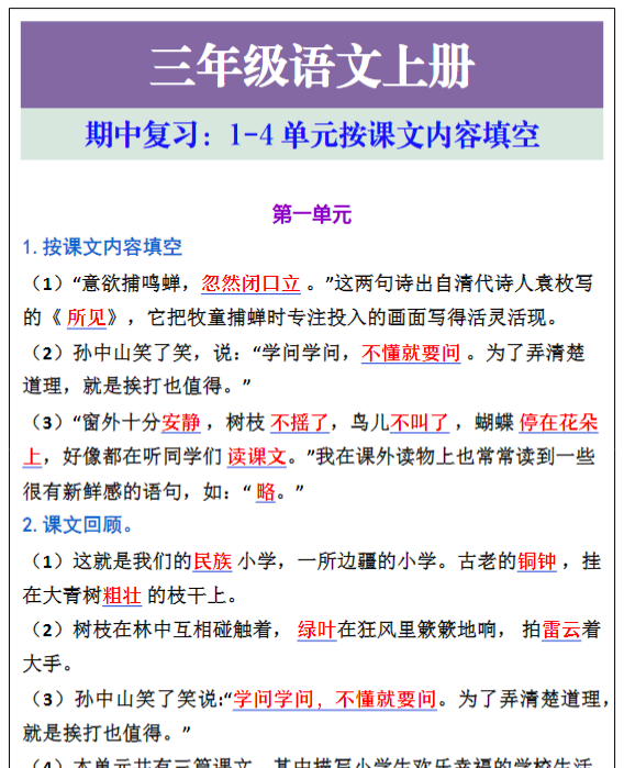【新版期中打包44套】小学三年级上册语文期中精品测试卷【可编辑高清无水印】