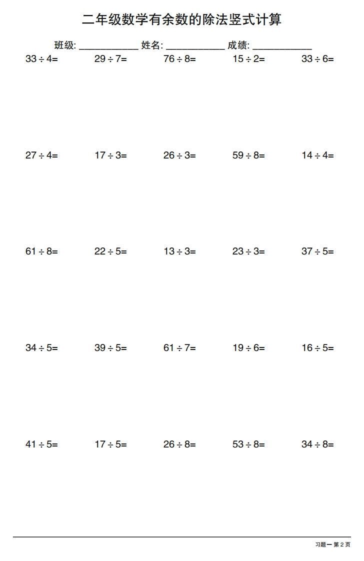 二下数学有余数的除法竖式计算40套 综合资料 幼师芒果 2023-06-30 二年级 资源下载下载价格0.0 下载币VIP免费升级VIP立即购买 ——预览已结束,还剩38页未读——开通会员后可免费下载高清完整文档 阅读全文