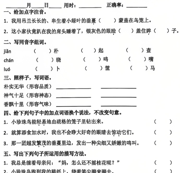 【默写单】三下语文1-8单元八大考点默写单(含答案16页)