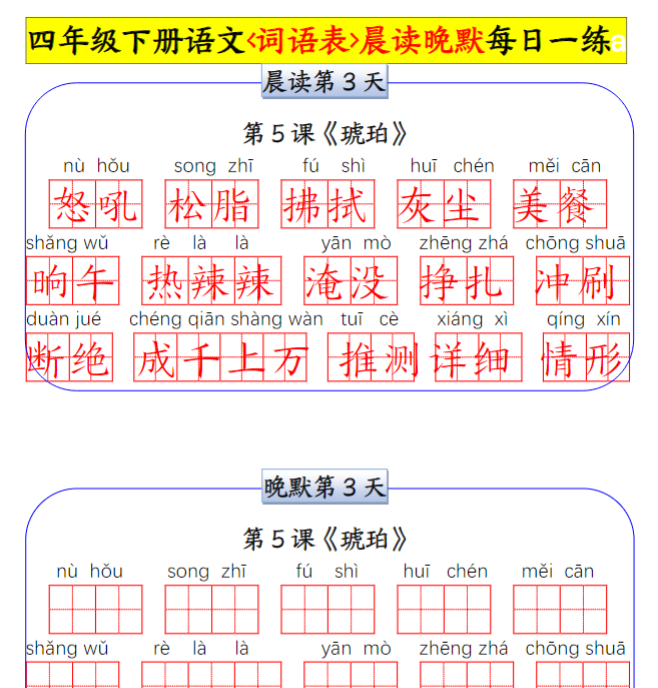 18页寒假预习计划-01+四年级下册语文语词语晨读晚默小纸条每日一练