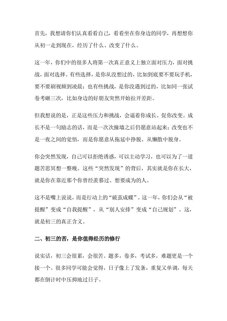 初2026届走进初三启动仪式上,校长精彩讲话:点燃这场奔跑的火!初三,我们一起向前! 综合资料 幼师优势 2025-10-13 教务 资源下载下载价格0.8 下载币VIP免费升级VIP立即购买 ——预览已结束,还剩3页未读——开通会员后可免费下载高清完整文档 阅读全文