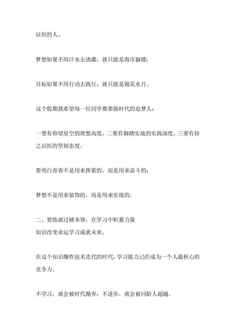 2025暑假散学典礼上,校长讲话:暑假是休整,更是蓄势;是放松,更是成长 暑假 刘波老师 2025-10-12 教务 资源下载下载价格1.2 下载币VIP免费升级VIP立即购买 ——预览已结束,还剩3页未读——开通会员后可免费下载高清完整文档 阅读全文