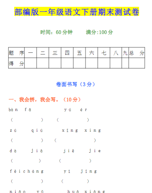 12份!最新一年级语文下册期末精品试卷资料打包下载【高清无水印+可编辑】
