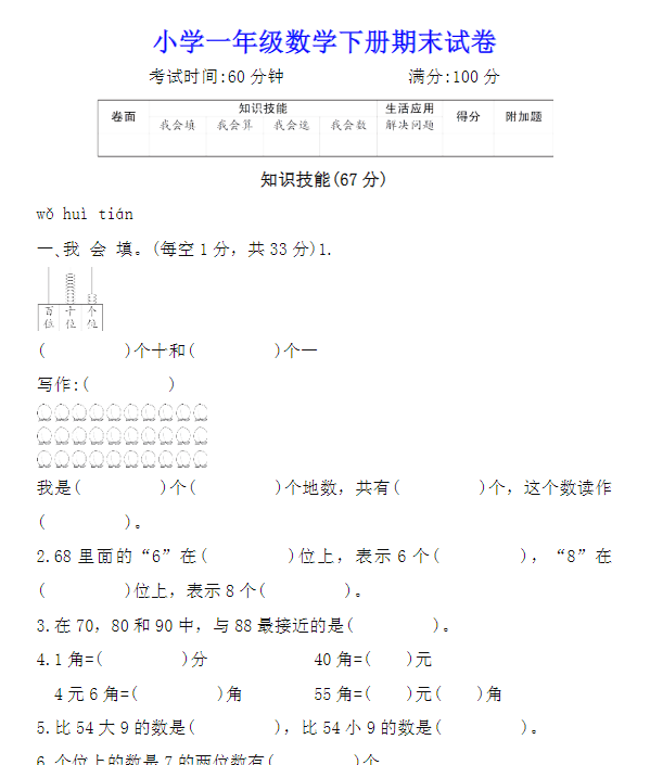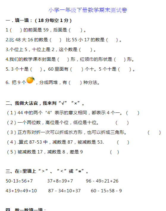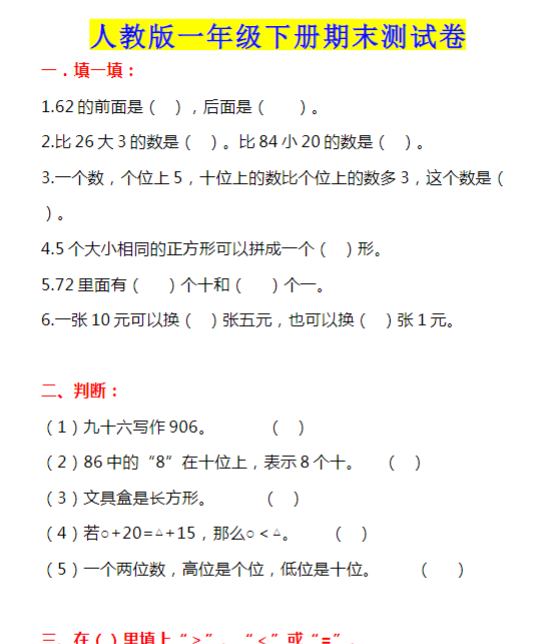 18份!最新一年级数学下册期末精品试卷资料打包下载【高清无水印+可编辑】