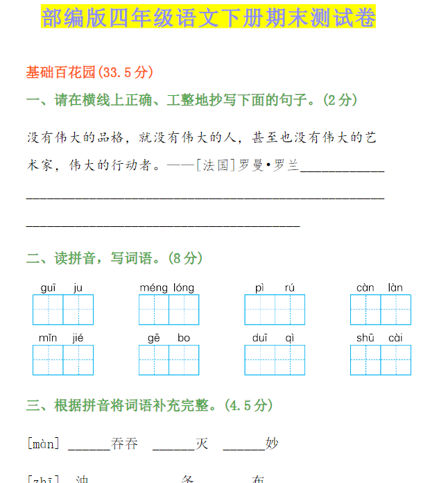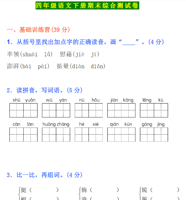 199份!最新四年级语文下册期末精品试卷资料打包下载【高清无水印+可编辑】