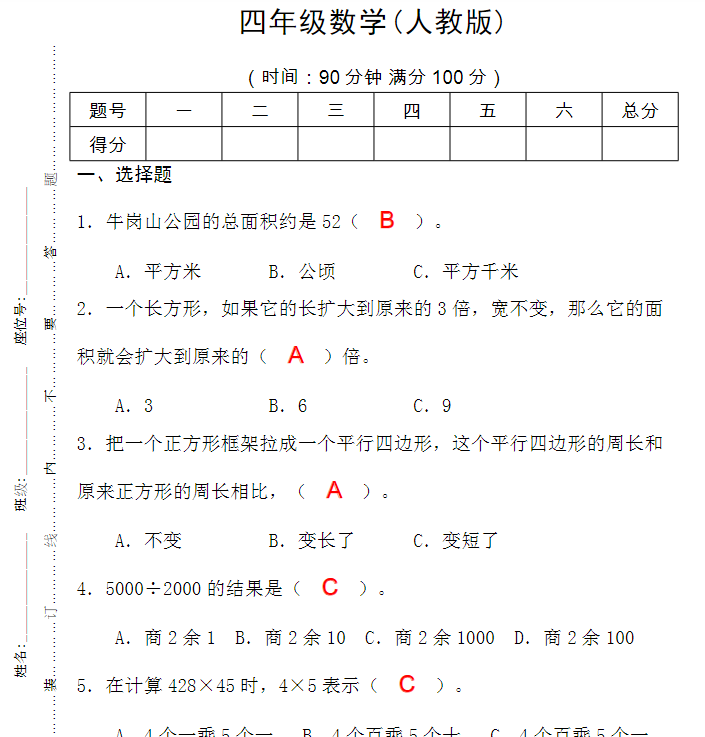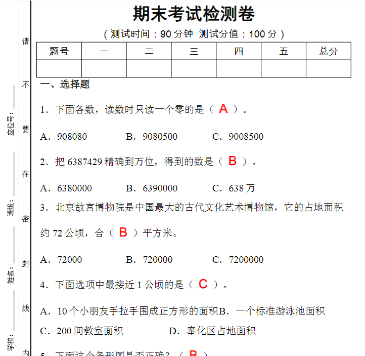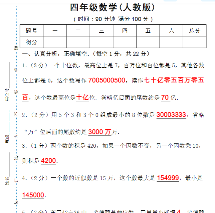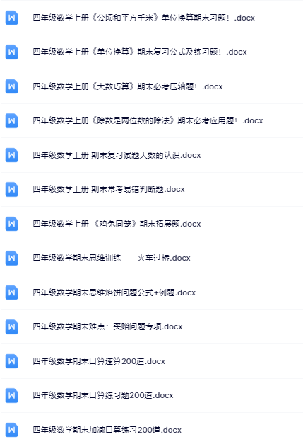 173份!最新四年级上册数学期末精品试卷资料打包下载【高清无水印+可编辑】