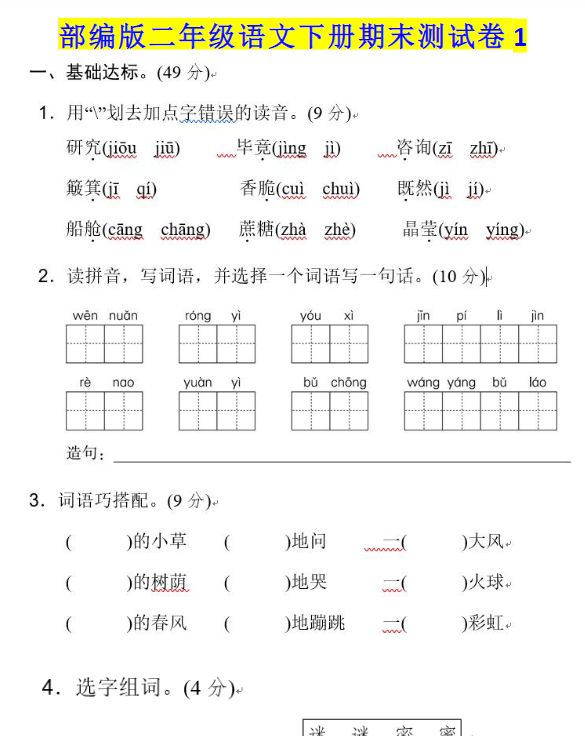 27份!最新二年级下册语文期末精品试卷资料打包下载【高清无水印+可编辑】