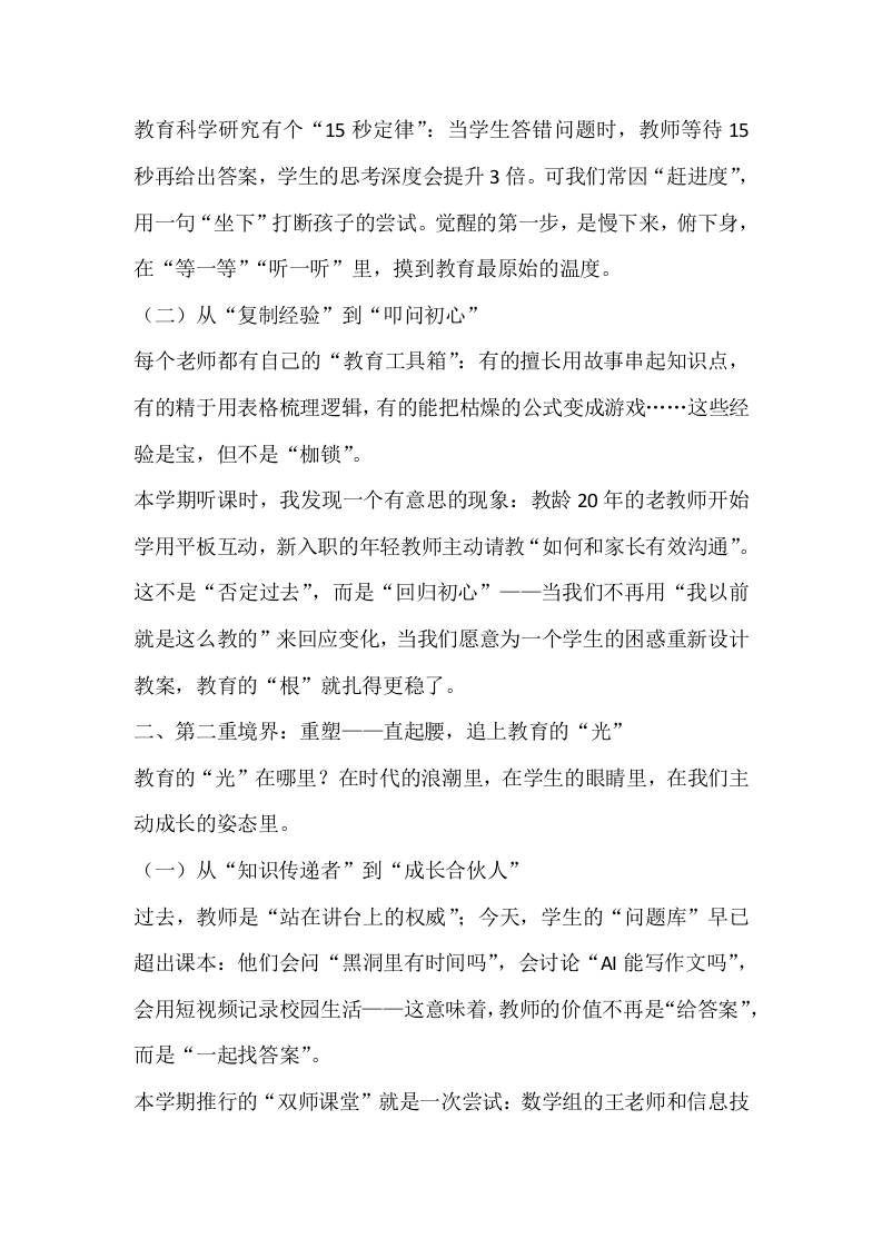 暑假前最后一次教师大会校长讲话稿:三重境界,重识教育的“根”与“光” 暑假 幼师PPT 2025-10-12 教务 资源下载下载价格0.8 下载币VIP免费升级VIP立即购买 ——预览已结束,还剩3页未读——开通会员后可免费下载高清完整文档 阅读全文