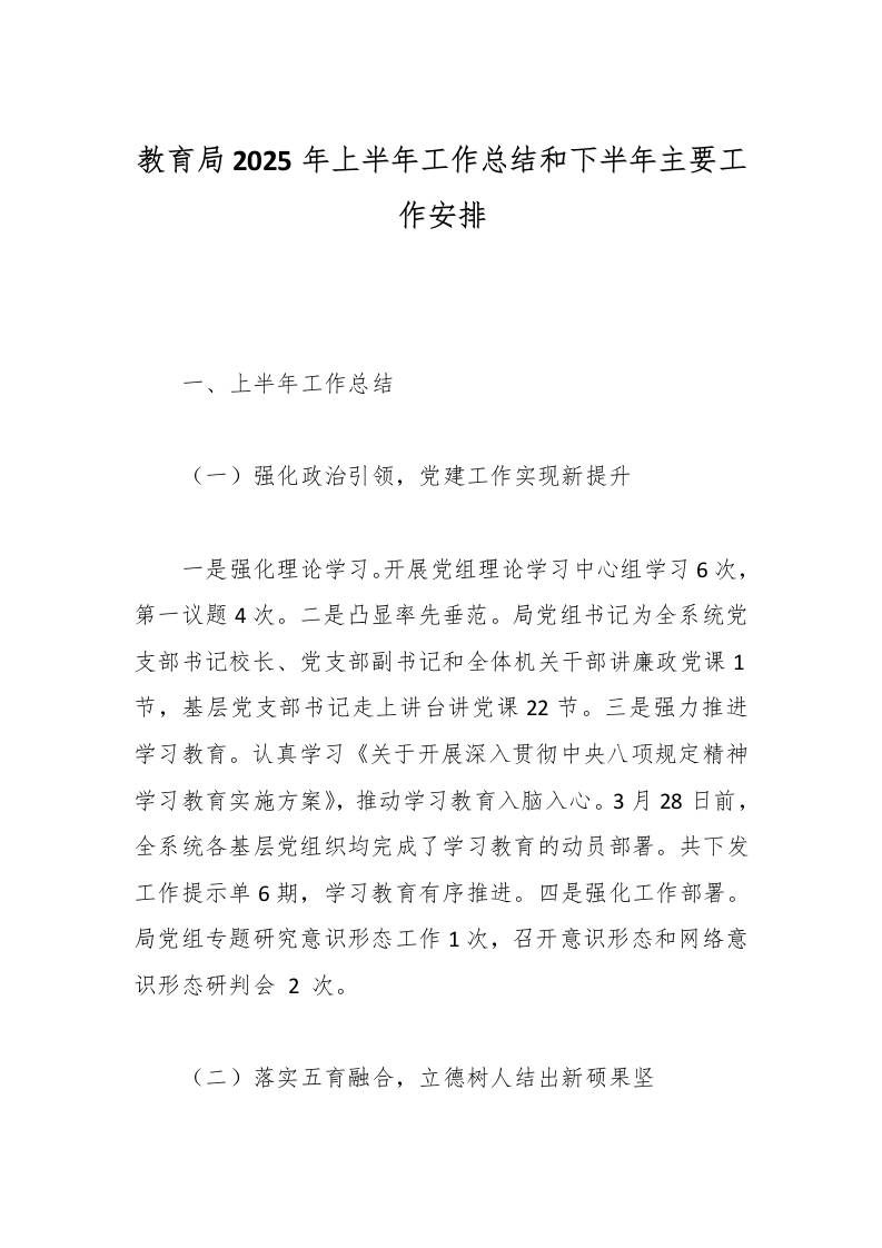 教育局2025年上半年工作总结和下半年主要工作安排 综合资料 2025-10-11 教务 资源下载下载价格1.2 下载币VIP免费升级VIP立即购买 ——预览已结束,还剩4页未读——开通会员后可免费下载高清完整文档 阅读全文