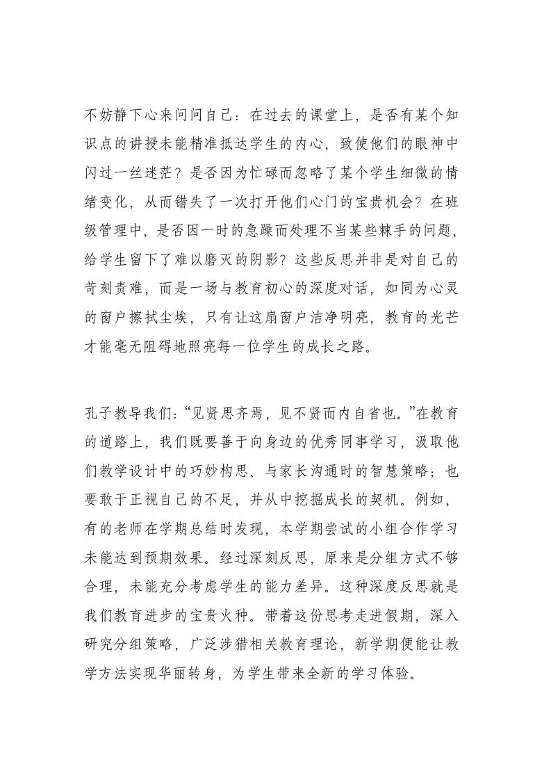 校长在2025暑假前期末教师大会上的讲话:在反思中沉淀,在坚持中生长,在释然中前行 期末试卷 幼师酸奶 2025-10-11 教务 资源下载下载价格0.8 下载币VIP免费升级VIP立即购买 ——预览已结束,还剩6页未读——开通会员后可免费下载高清完整文档 阅读全文