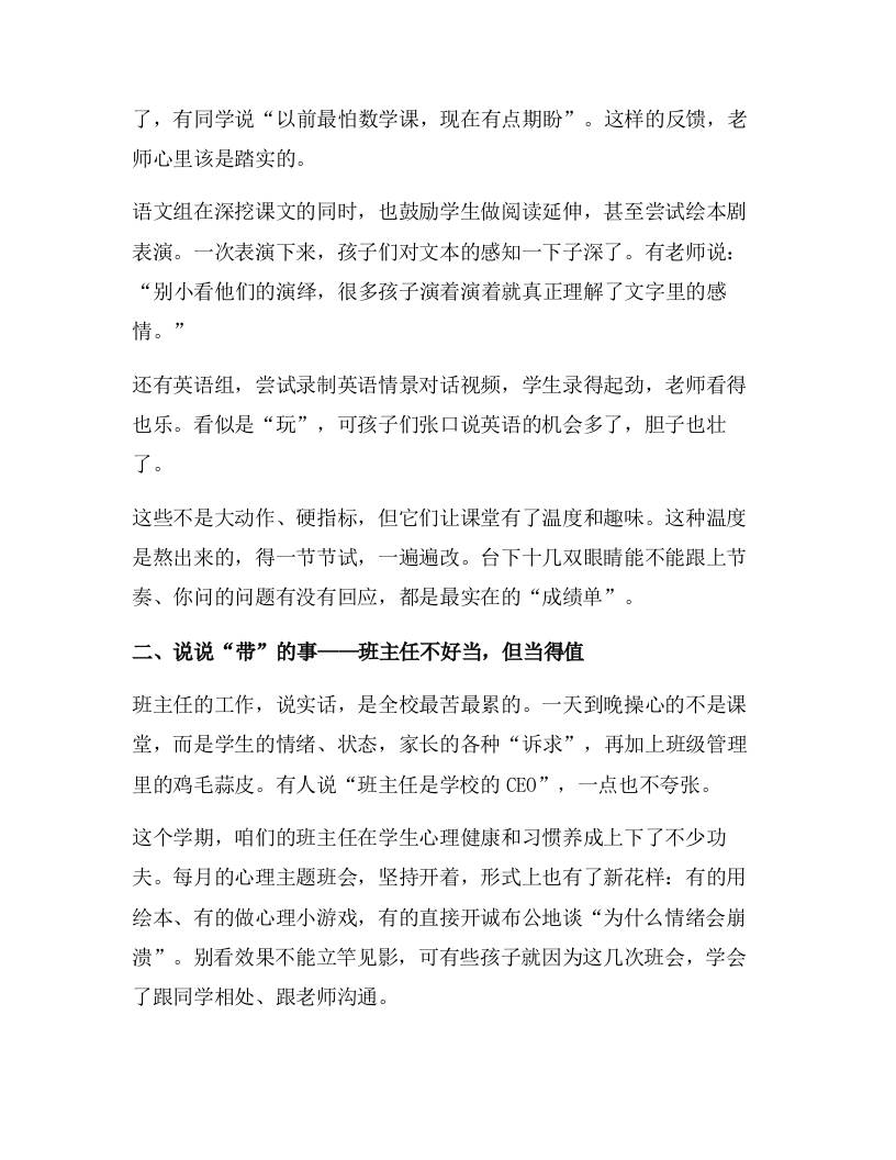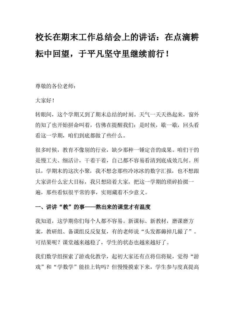 校长在期末工作总结会上的讲话:在点滴耕耘中回望,于平凡坚守里继续前行! 期末试卷 雄鹰老师 2025-10-11 教务 资源下载下载价格1.2 下载币VIP免费升级VIP立即购买 ——预览已结束,还剩4页未读——开通会员后可免费下载高清完整文档 阅读全文