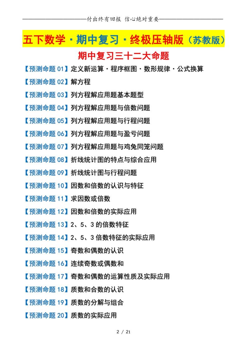 五下数学期中复习·终极压轴版(原卷版)苏教版21页 期中试卷 幼师李老师 2025-10-28 五年级 资源下载下载价格1.2 下载币VIP免费升级VIP立即购买 ——预览已结束,还剩19页未读——开通会员后可免费下载高清完整文档 阅读全文