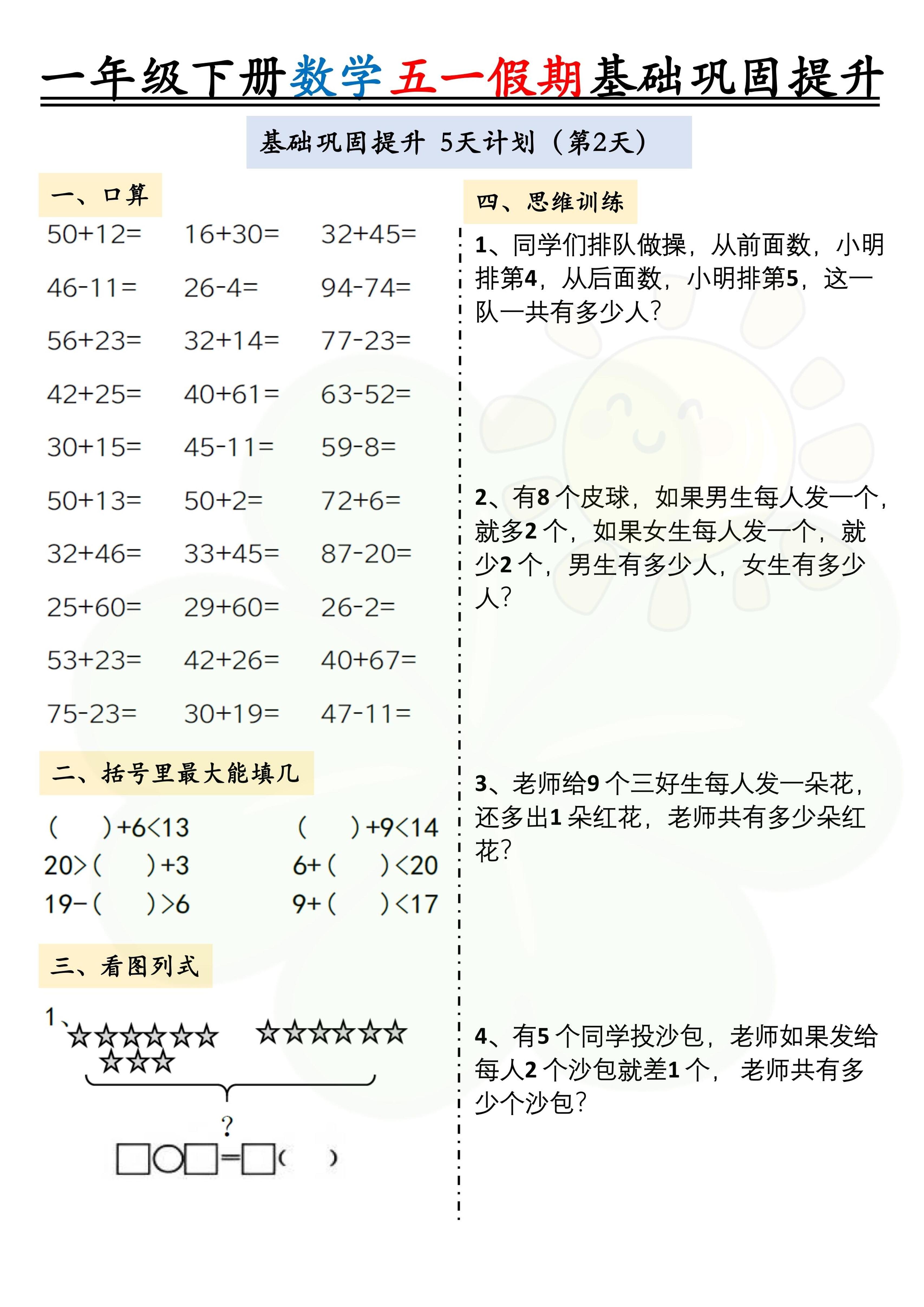 一下数学五一假期作业两套(10页)基础巩固提升 综合资料 幼师李老师 2025-10-28 一年级 资源下载下载价格0.0 下载币VIP免费升级VIP立即购买 ——预览已结束,还剩8页未读——开通会员后可免费下载高清完整文档 阅读全文