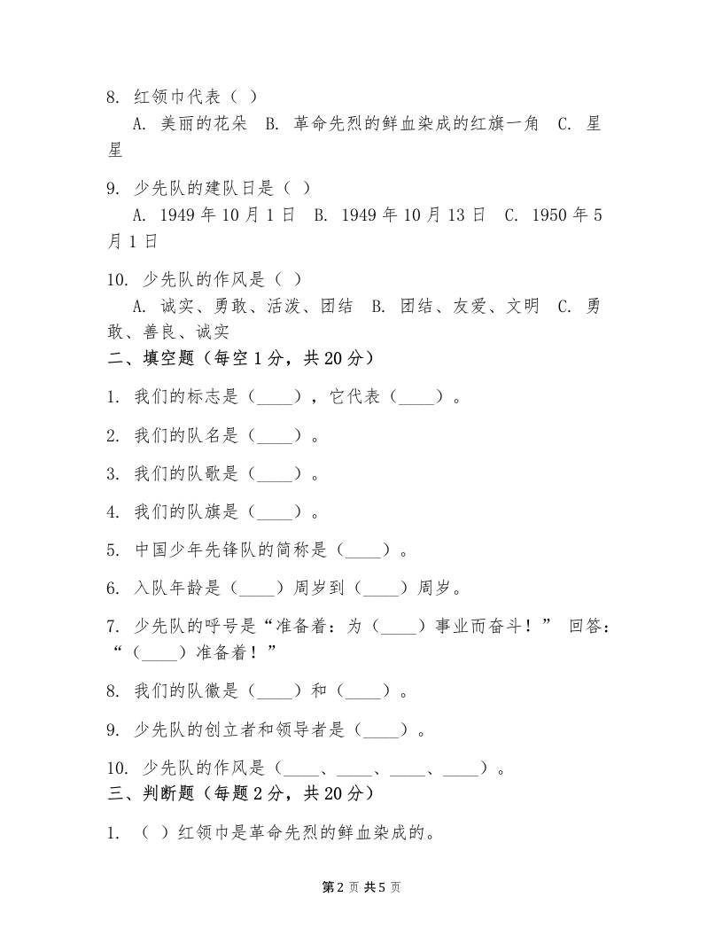 附件:少先队入队知识测试卷 知识点 栀晴 2025-10-11 教务 资源下载下载价格1.8 下载币VIP免费升级VIP立即购买 ——预览已结束,还剩3页未读——开通会员后可免费下载高清完整文档 阅读全文