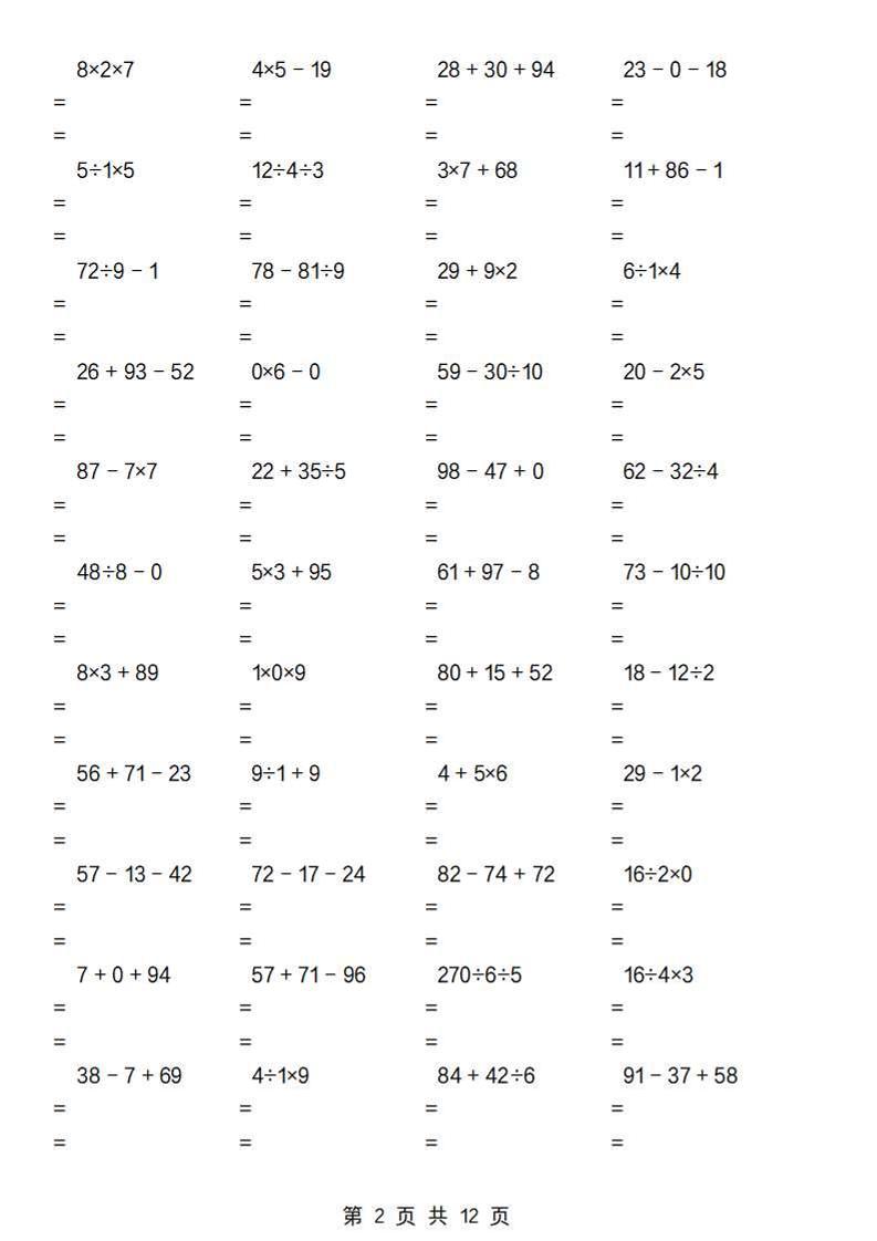 二下数学【加减乘除混合运算专项(一到四)】 专项练习 幼师王老师 2025-10-28 二年级 资源下载下载价格0.0 下载币VIP免费升级VIP立即购买 ——预览已结束,还剩10页未读——开通会员后可免费下载高清完整文档 阅读全文