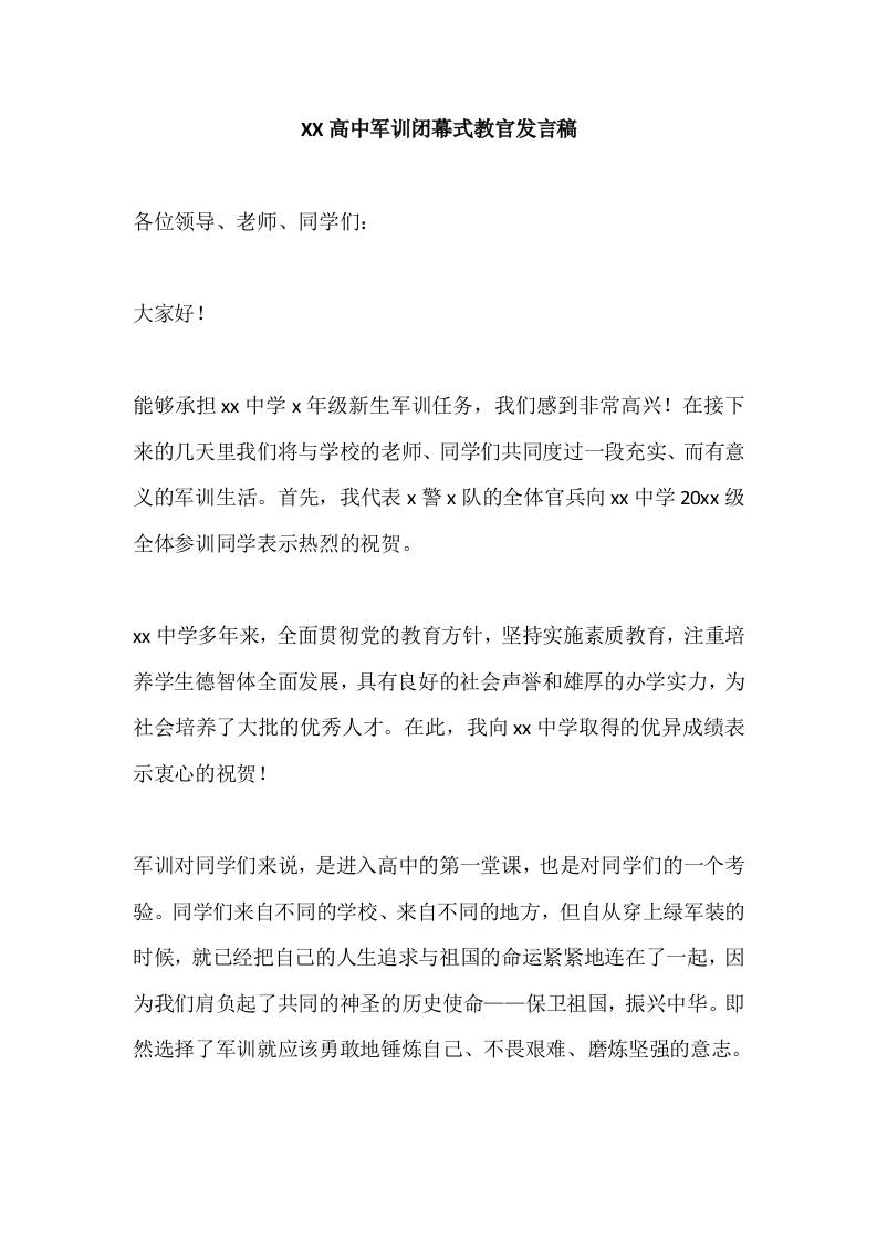 XX高中军训闭幕式教官发言稿 综合资料 幼师优势 2025-10-11 教务 资源下载下载价格1.2 下载币VIP免费升级VIP立即购买 ——预览已结束,还剩1页未读——开通会员后可免费下载高清完整文档 阅读全文