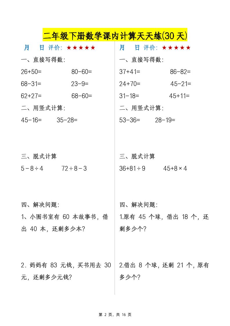 二下数学【课内计算天天练30天】 综合资料 幼师常 2025-10-28 二年级 资源下载下载价格1.2 下载币VIP免费升级VIP立即购买 ——预览已结束,还剩14页未读——开通会员后可免费下载高清完整文档 阅读全文