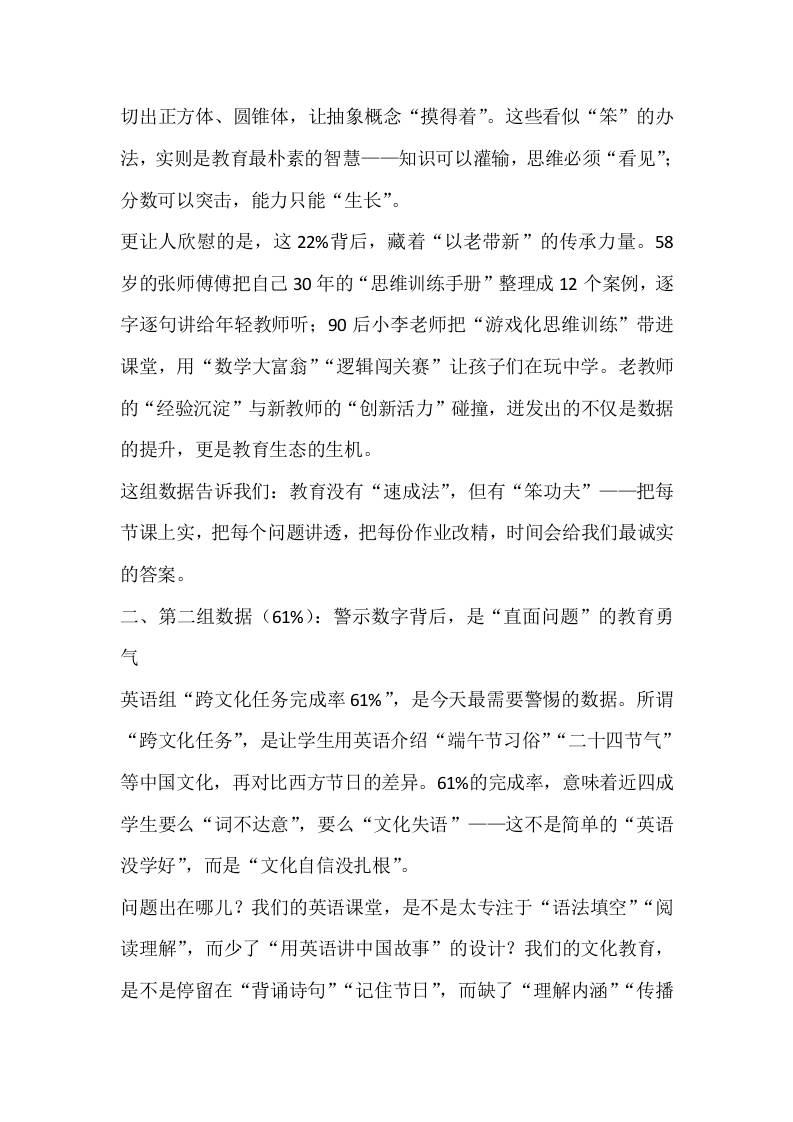 期末教学质量分析会校长总结发言:三个数据背后的教育密码 期末试卷 王赞 2025-10-11 教务 资源下载下载价格1.2 下载币VIP免费升级VIP立即购买 ——预览已结束,还剩3页未读——开通会员后可免费下载高清完整文档 阅读全文