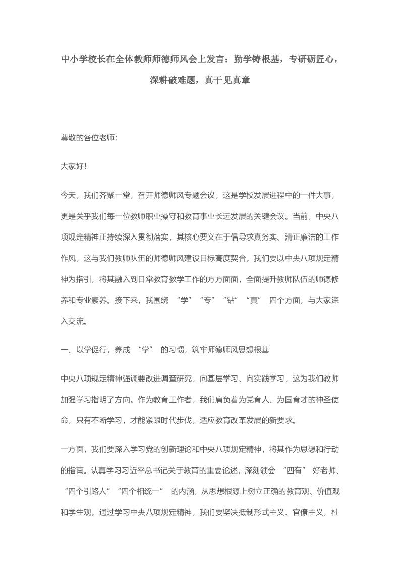 中小学校长在全体教师师德师风会上发言:勤学铸根基,专研砺匠心,深耕破难题,真干见真章 综合资料 幼师王老师 2025-10-10 教务 资源下载下载价格0.8 下载币VIP免费升级VIP立即购买 ——预览已结束,还剩4页未读——开通会员后可免费下载高清完整文档 阅读全文