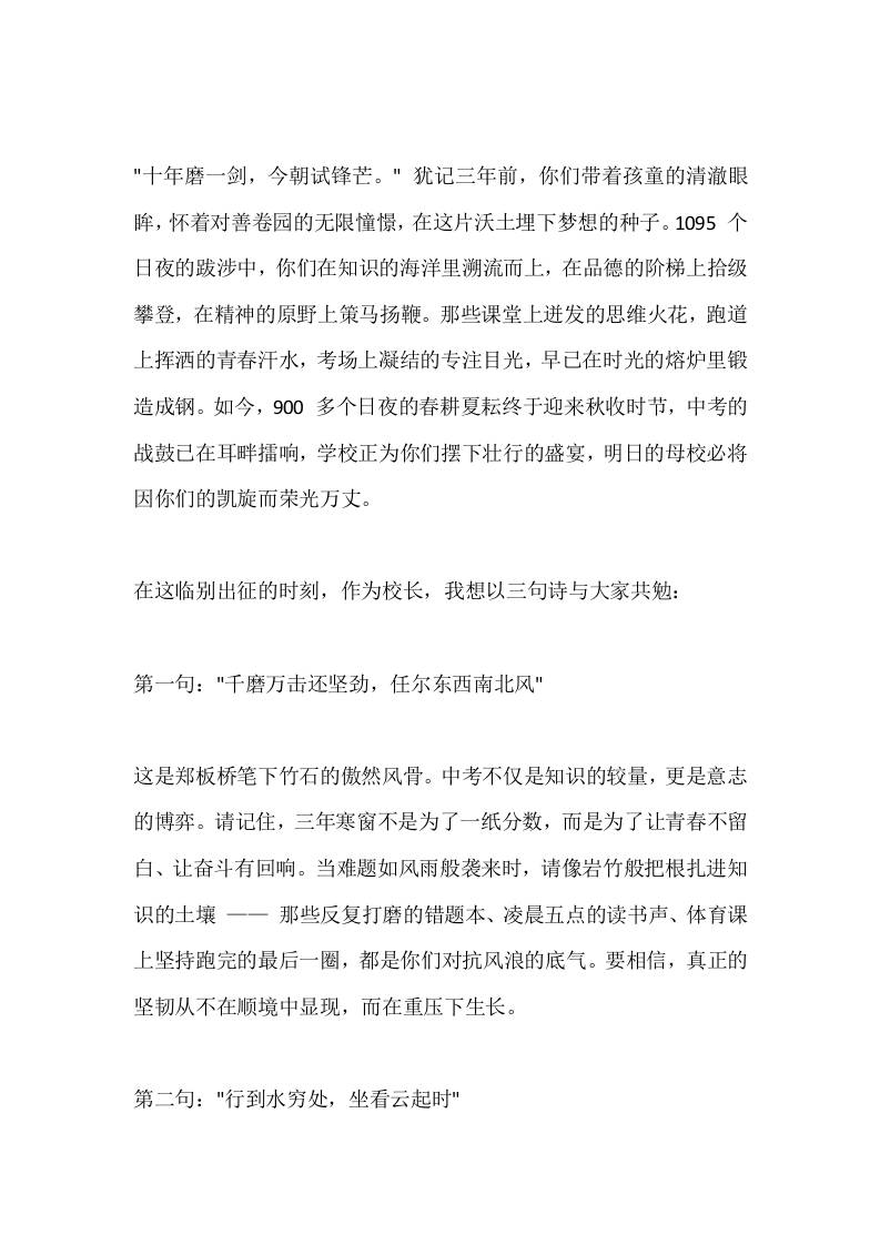 2025中考出征仪式,初中校长精彩讲话:胜利的旗帜,必将在六月的骄阳下为你们高高扬起 综合资料 2025-10-10 教务 资源下载下载价格1.8 下载币VIP免费升级VIP立即购买 ——预览已结束,还剩2页未读——开通会员后可免费下载高清完整文档 阅读全文