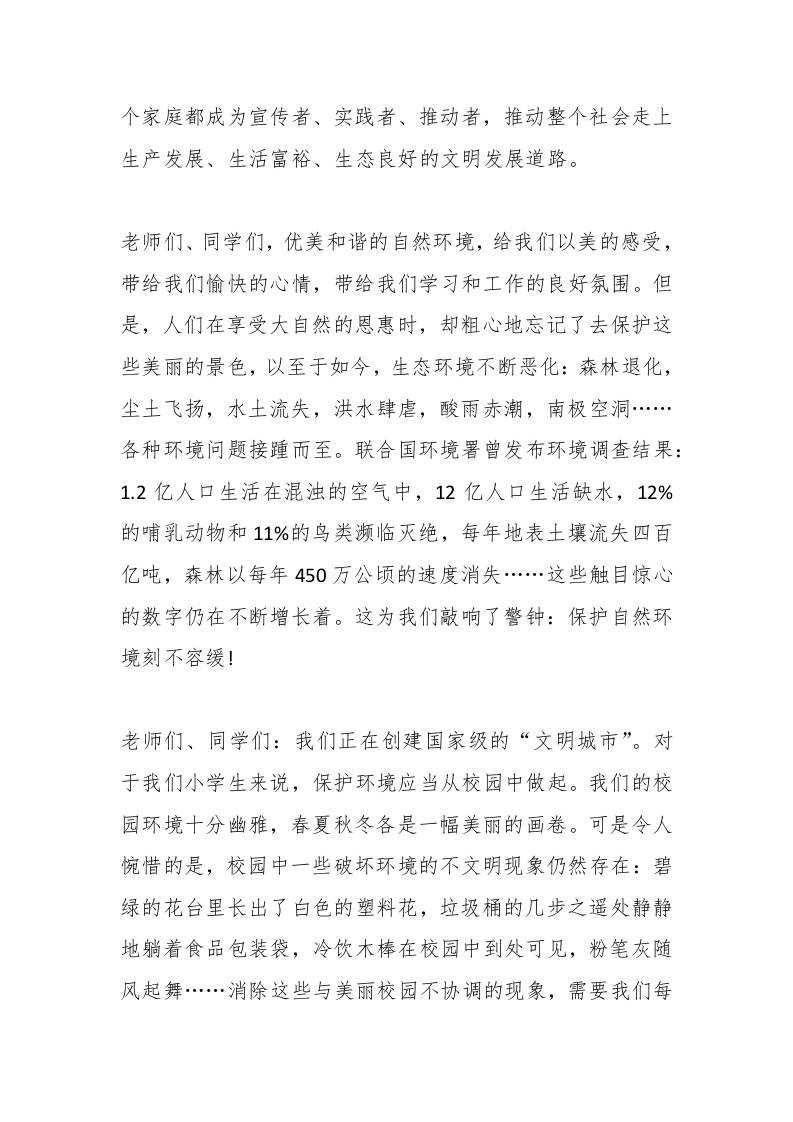 6月5日世界环境日,校长在国旗下讲话:让我们携手保护环境,播洒绿色的希望,爱护我们美丽的校园,呵护我们的地球家园 综合资料 幼师优势 2025-10-10 教务 资源下载下载价格1.8 下载币VIP免费升级VIP立即购买 ——预览已结束,还剩2页未读——开通会员后可免费下载高清完整文档 阅读全文