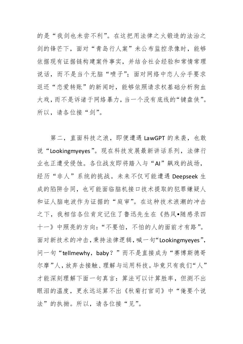 在2025届毕业典礼上的讲话:做一个善用“三神装”的法律人 综合资料 幼师李老师 2025-10-10 教务 资源下载下载价格1.8 下载币VIP免费升级VIP立即购买 ——预览已结束,还剩2页未读——开通会员后可免费下载高清完整文档 阅读全文
