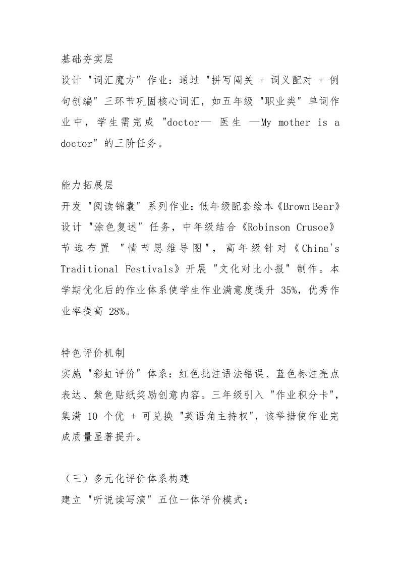 深耕课堂促发展创新教研提质效——第二学期小学英语教研组工作总结 综合资料 幼师优势 2025-10-10 教务 资源下载下载价格1.2 下载币VIP免费升级VIP立即购买 ——预览已结束,还剩7页未读——开通会员后可免费下载高清完整文档 阅读全文