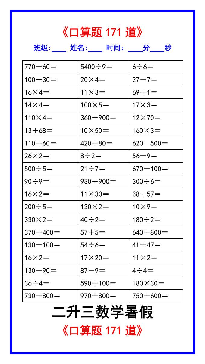 二升三数学暑假《口算练习题171道》汇总-三上数学 专项练习 幼师郝雪 2025-10-28 三年级 资源下载下载价格1.2 下载币VIP免费升级VIP立即购买 ——预览已结束,还剩1页未读——开通会员后可免费下载高清完整文档 阅读全文