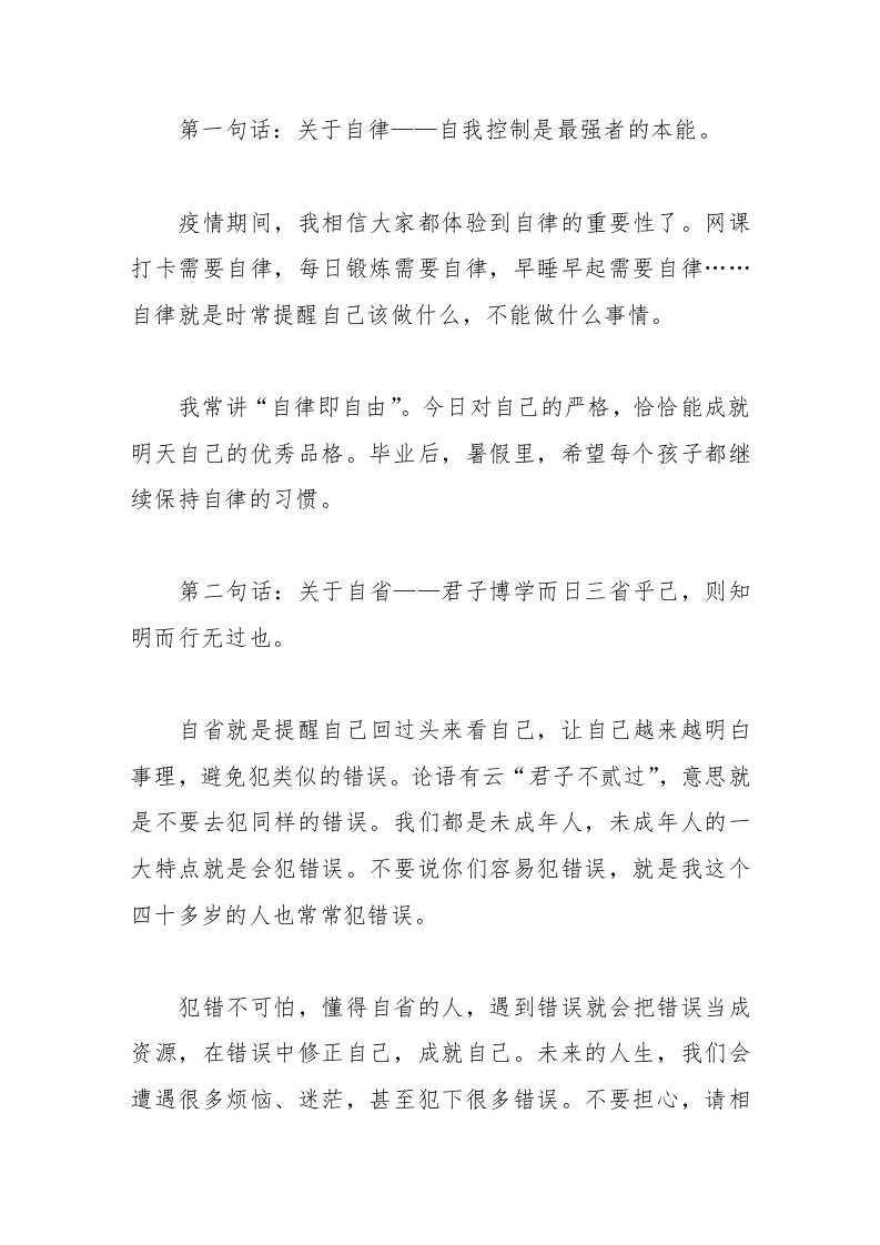 毕业典礼上,校长送给全体学生3句话,希望这些词语,这些句子,带给你们无限的能量 综合资料 刘波老师 2025-10-09 教务 资源下载下载价格0.8 下载币VIP免费升级VIP立即购买 ——预览已结束,还剩2页未读——开通会员后可免费下载高清完整文档 阅读全文