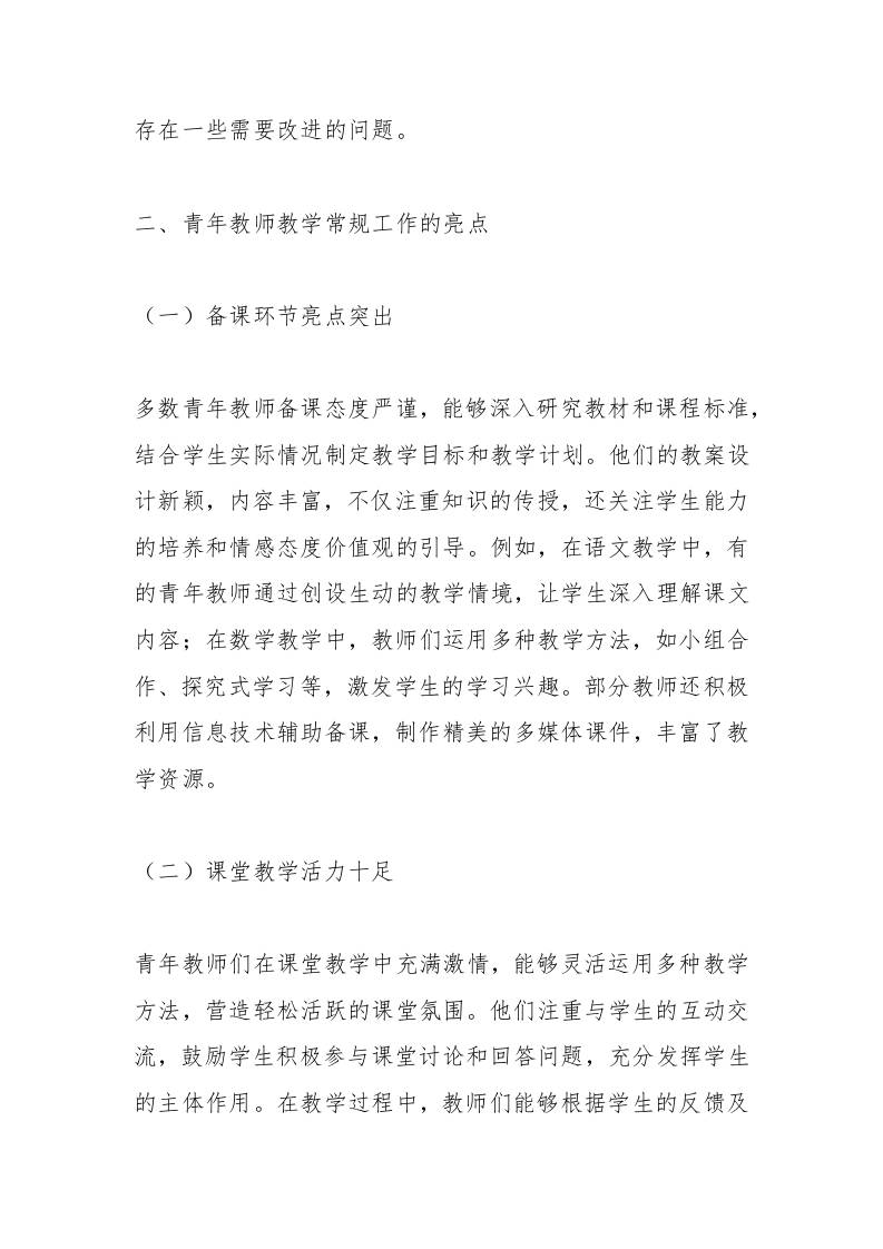 2025年初中学校青年教师教学常规检查反馈汇报 综合资料 幼师酸奶 2025-10-09 教务 资源下载下载价格0.8 下载币VIP免费升级VIP立即购买 ——预览已结束,还剩7页未读——开通会员后可免费下载高清完整文档 阅读全文
