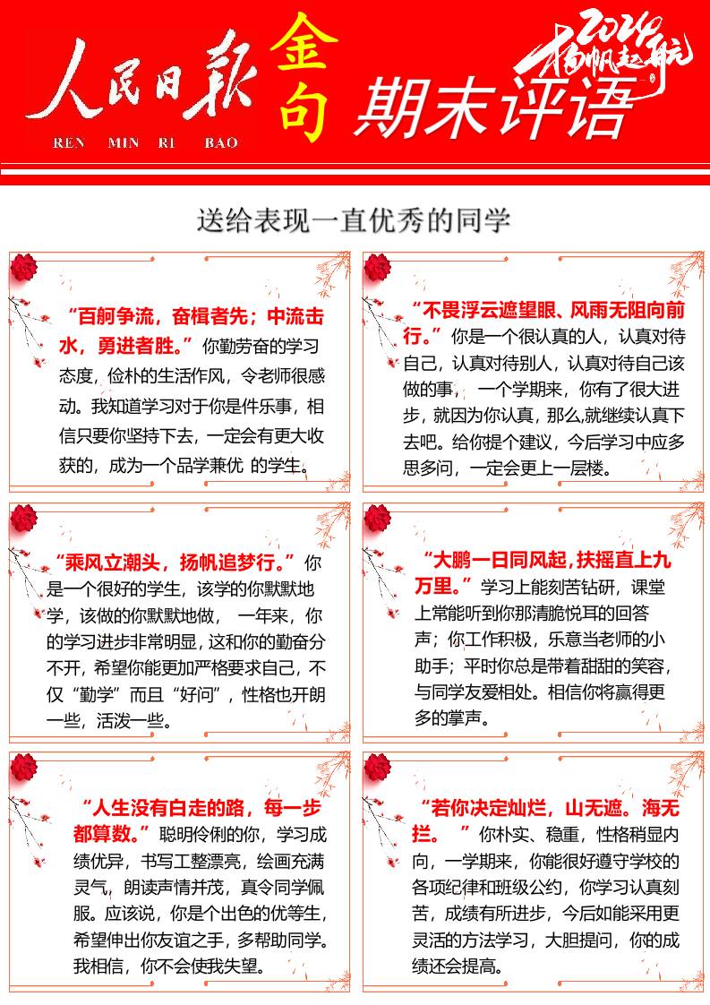【人民日报】72则金句期末评语-每页6张 期末试卷 王赞 2025-10-09 教务 资源下载下载价格0.8 下载币VIP免费升级VIP立即购买 ——预览已结束,还剩10页未读——开通会员后可免费下载高清完整文档 阅读全文