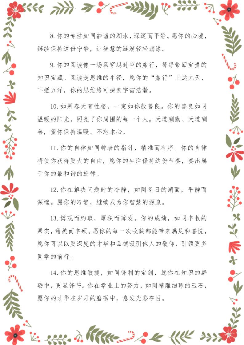 50句期末评语,给不同学生的诗意评价 期末试卷 幼师优势 2025-10-09 教务 资源下载下载价格1.8 下载币VIP免费升级VIP立即购买 ——预览已结束,还剩5页未读——开通会员后可免费下载高清完整文档 阅读全文