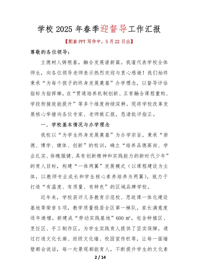 2025年春季学期学校迎督导工作汇报讲稿 综合资料 栀晴 2025-10-09 教务 资源下载下载价格0.8 下载币VIP免费升级VIP立即购买 ——预览已结束,还剩12页未读——开通会员后可免费下载高清完整文档 阅读全文