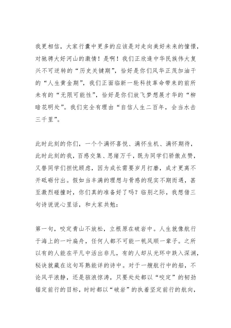 校党委书记在2025年毕业典礼上的讲话:路在脚下踏歌而行 综合资料 幼师常 2025-10-09 教务 资源下载下载价格1.2 下载币VIP免费升级VIP立即购买 ——预览已结束,还剩3页未读——开通会员后可免费下载高清完整文档 阅读全文
