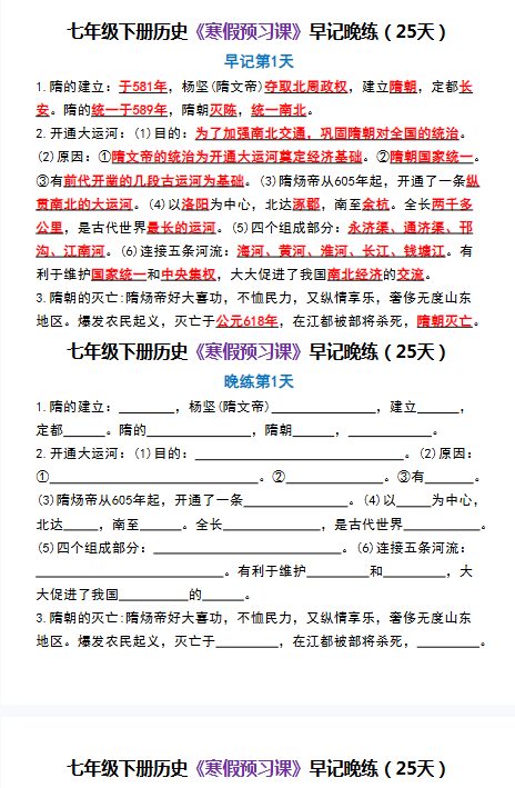 【24版初中七下历史精品小纸条】【高清无水印版本】