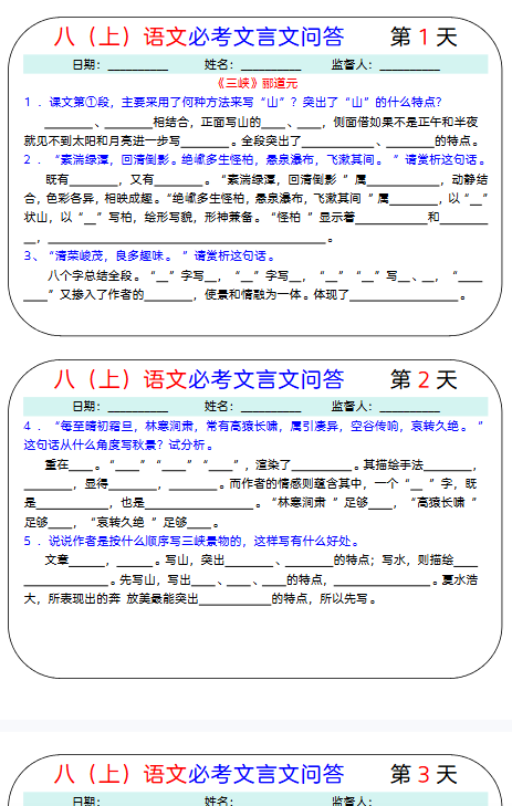 【初中八上语文精品小纸条】【高清无水印版本】