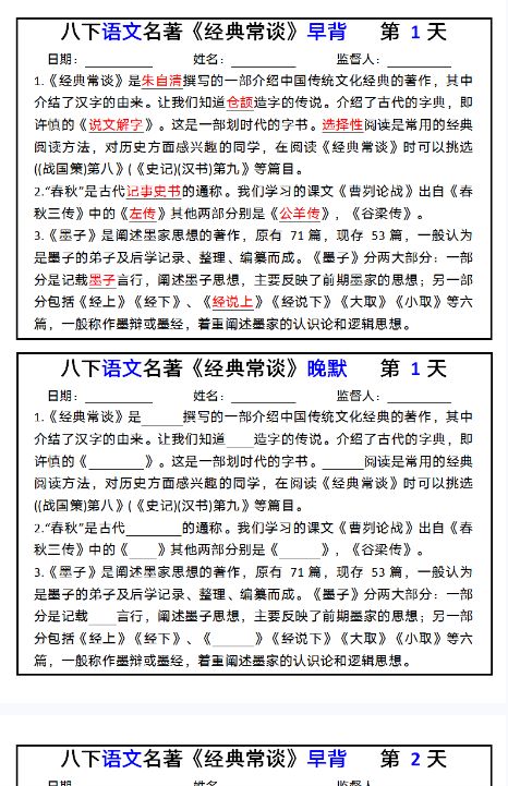 【初中八下语文经典常谈精品小纸条】【高清无水印版本】