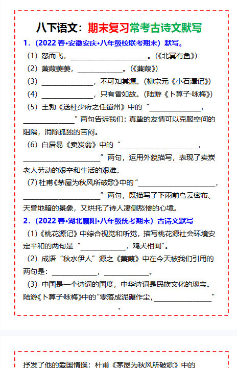 【初中八下语文期末精品小纸条】【高清无水印版本】