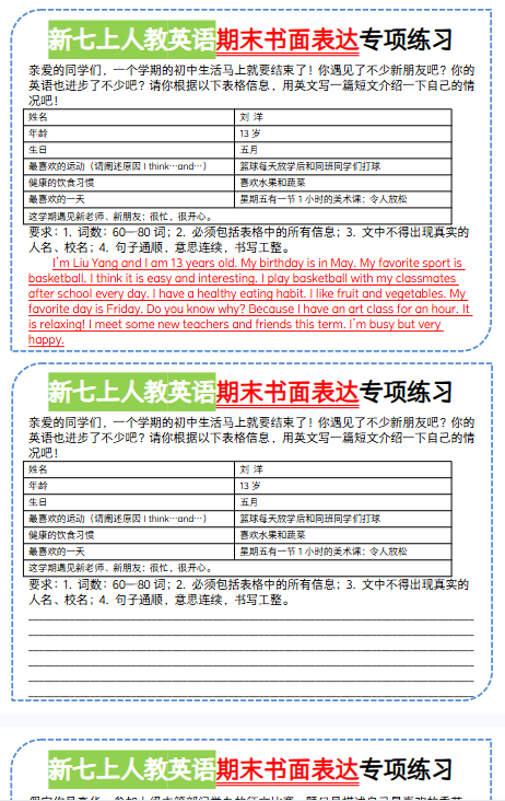 【初中七上英语期末复习精品小纸条】【高清无水印版本】
