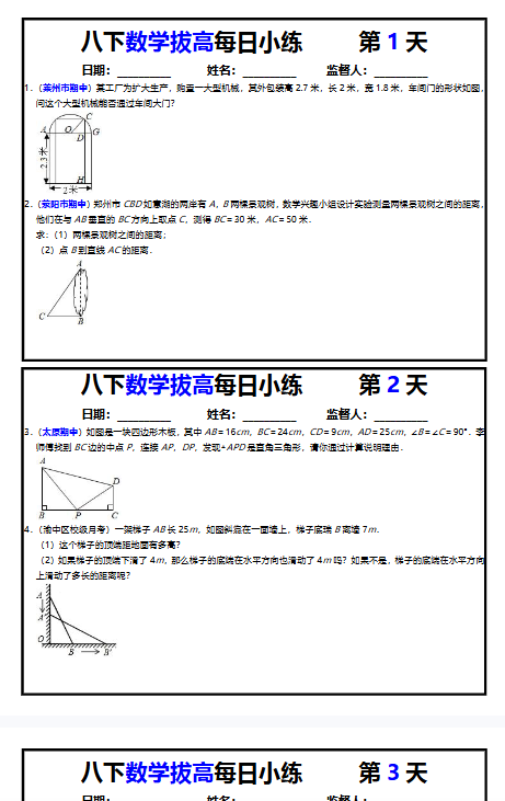 【初中八下数学精品小纸条】【高清无水印版本】