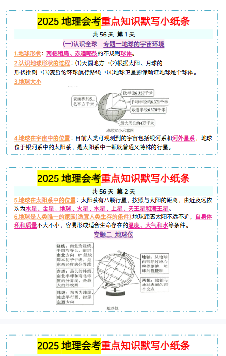 【2025初中会考地理精品小纸条】【高清无水印版本】