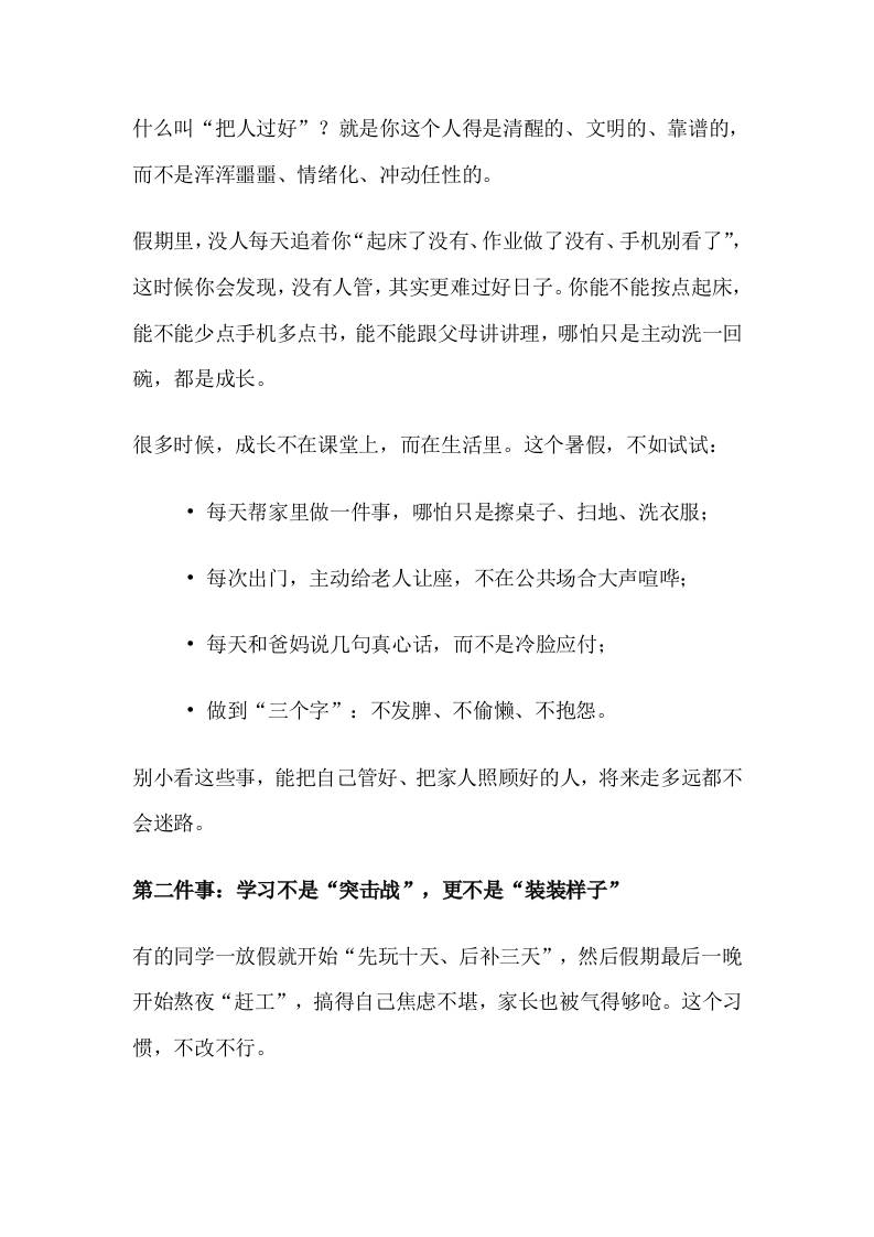 2025暑假散学典礼上,校长讲话:一位校长的暑假忠告火遍全网!4个红线3个关键词,引得无数家长转发! 暑假 幼师芒果 2025-10-08 教务 资源下载下载价格1.8 下载币VIP免费升级VIP立即购买 ——预览已结束,还剩4页未读——开通会员后可免费下载高清完整文档 阅读全文