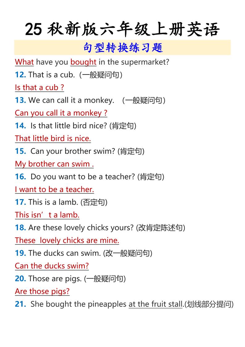 【2025秋新版】六年级上册英语句型转换练习题 专项练习 2025-10-28 六年级 资源下载下载价格0.8 下载币VIP免费升级VIP立即购买 ——预览已结束,还剩2页未读——开通会员后可免费下载高清完整文档 阅读全文