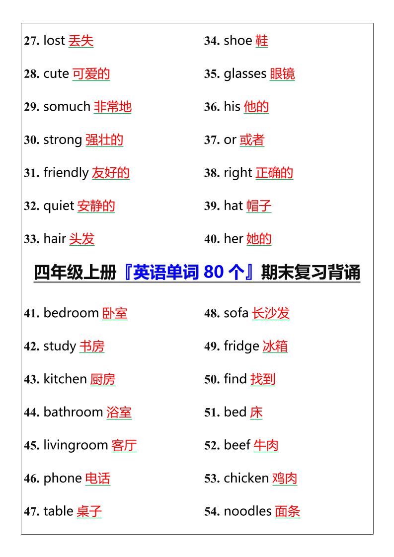 【2025秋新版】四年级上册『英语单词80个』期末复习背诵 期末试卷 幼师常 2025-10-28 四年级 资源下载下载价格0.8 下载币VIP免费升级VIP立即购买 ——预览已结束,还剩1页未读——开通会员后可免费下载高清完整文档 阅读全文