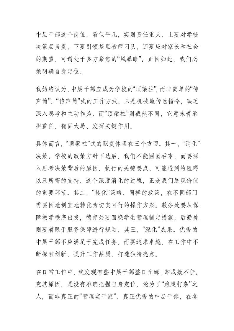 校长在学校中层干部述职会上讲话:“四面楚歌”的中层干部,为什么越来越难当? 综合资料 水果叶子 2025-10-07 教务 资源下载下载价格1.2 下载币VIP免费升级VIP立即购买 ——预览已结束,还剩5页未读——开通会员后可免费下载高清完整文档 阅读全文