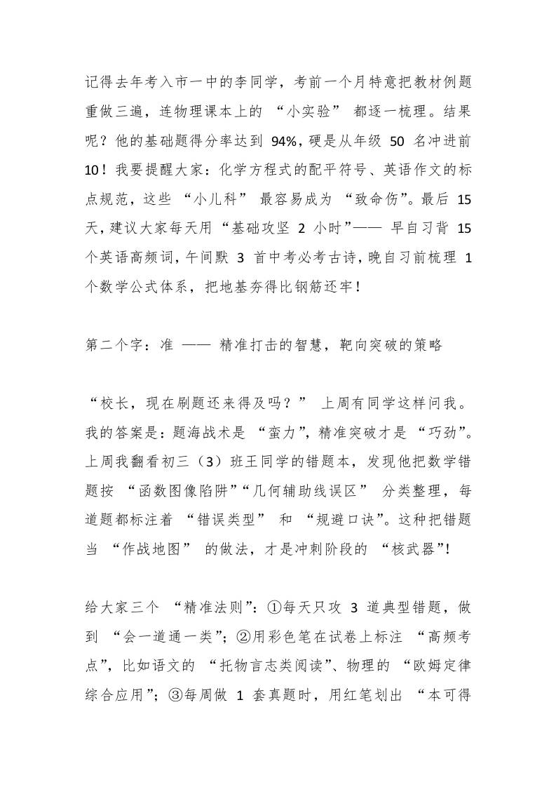 校长在2025届中考冲刺大会上的讲话:稳、准、狠 综合资料 幼师王老师 2025-10-07 教务 资源下载下载价格1.8 下载币VIP免费升级VIP立即购买 ——预览已结束,还剩2页未读——开通会员后可免费下载高清完整文档 阅读全文