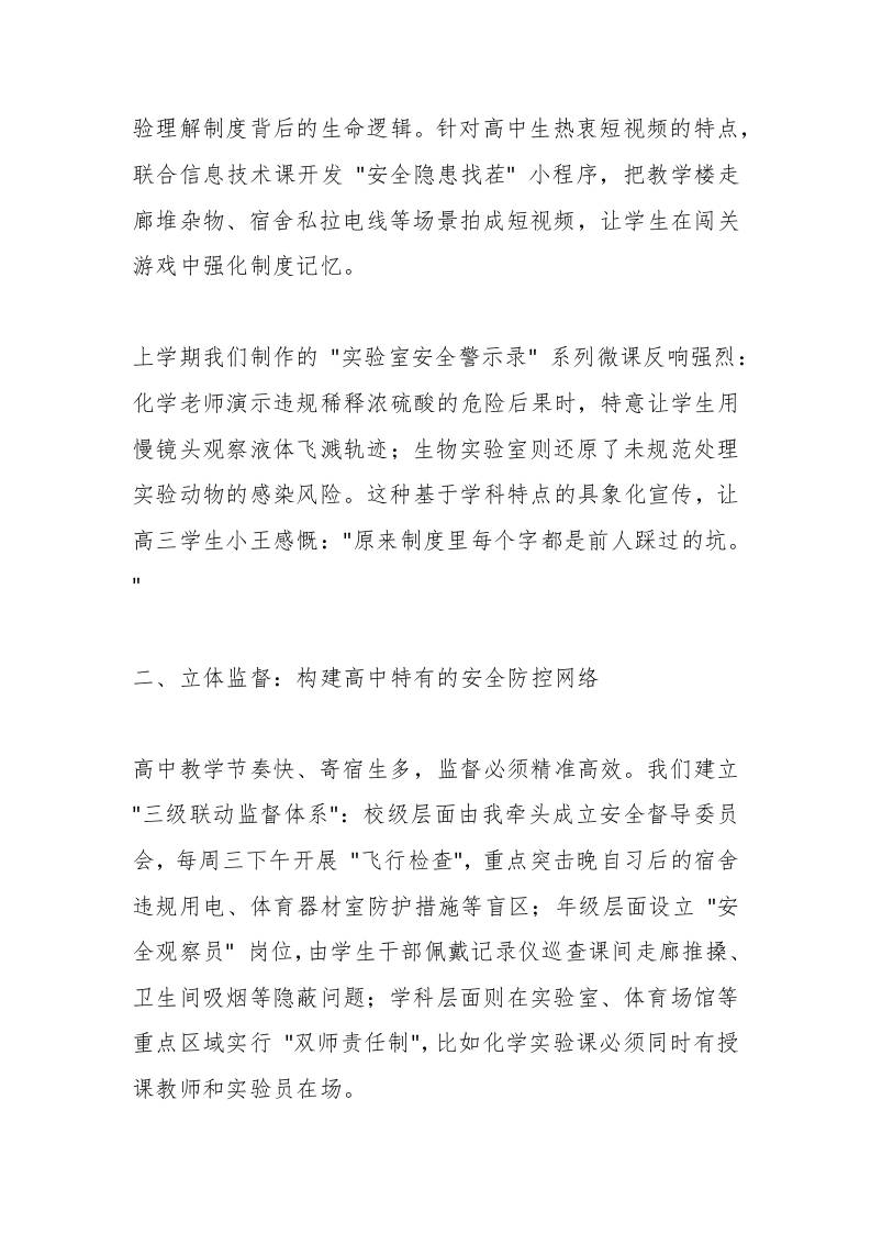 高中校长在全市学校安全工作经验交流会上的发言:筑牢高中校园安全防线,守护青春成长净土 综合资料 雄鹰老师 2025-10-07 教务 资源下载下载价格0.8 下载币VIP免费升级VIP立即购买 ——预览已结束,还剩3页未读——开通会员后可免费下载高清完整文档 阅读全文