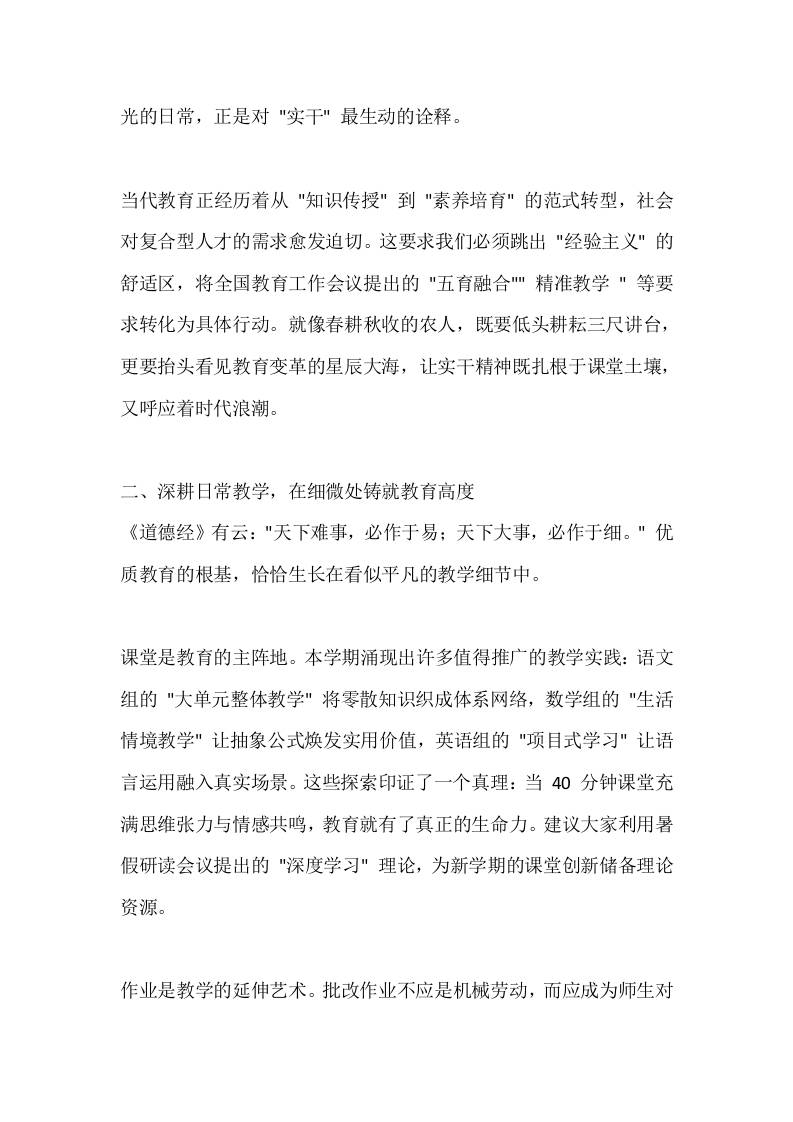 2025春季学期暑假放假前,教师会议上校长讲话:以实干筑基,用创新赋能教育新征程 暑假 幼师芒果 2025-10-07 教务 资源下载下载价格1.8 下载币VIP免费升级VIP立即购买 ——预览已结束,还剩4页未读——开通会员后可免费下载高清完整文档 阅读全文