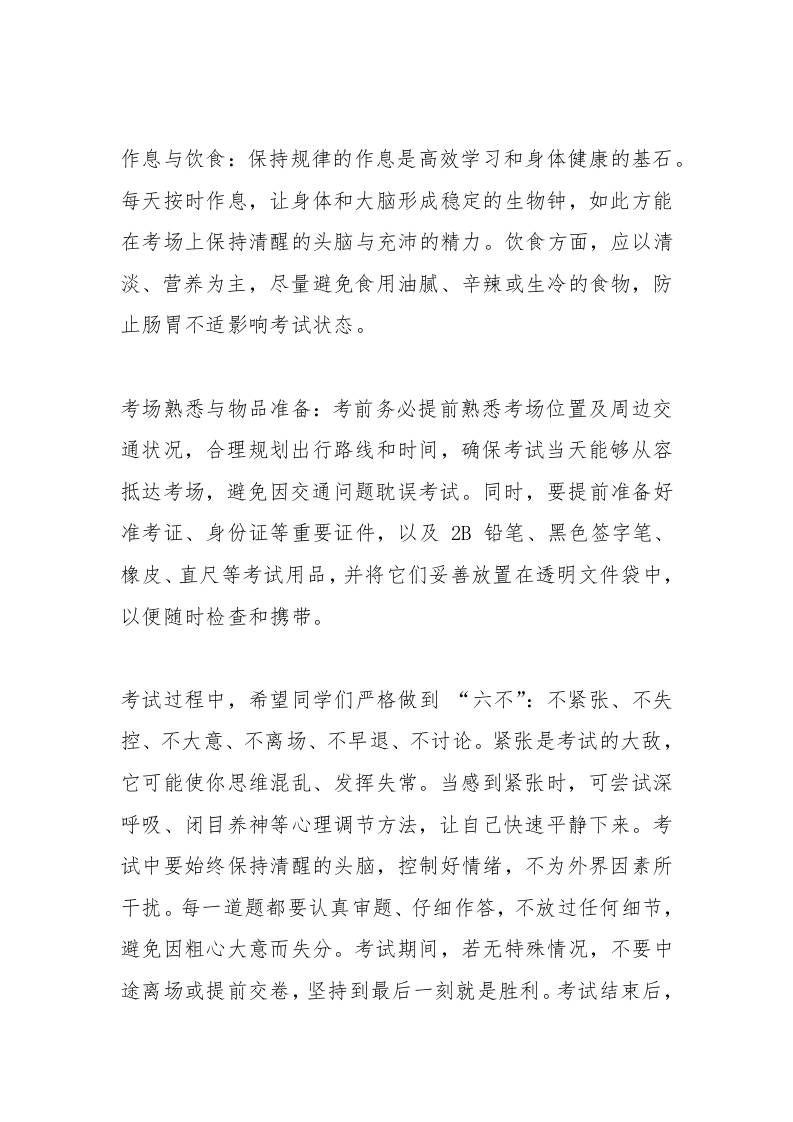 高考动员暨考风考纪教育大会发言稿:激扬青春赴考场,诚信为本铸辉煌 综合资料 幼师芒果 2025-10-07 教务 资源下载下载价格1.2 下载币VIP免费升级VIP立即购买 ——预览已结束,还剩3页未读——开通会员后可免费下载高清完整文档 阅读全文