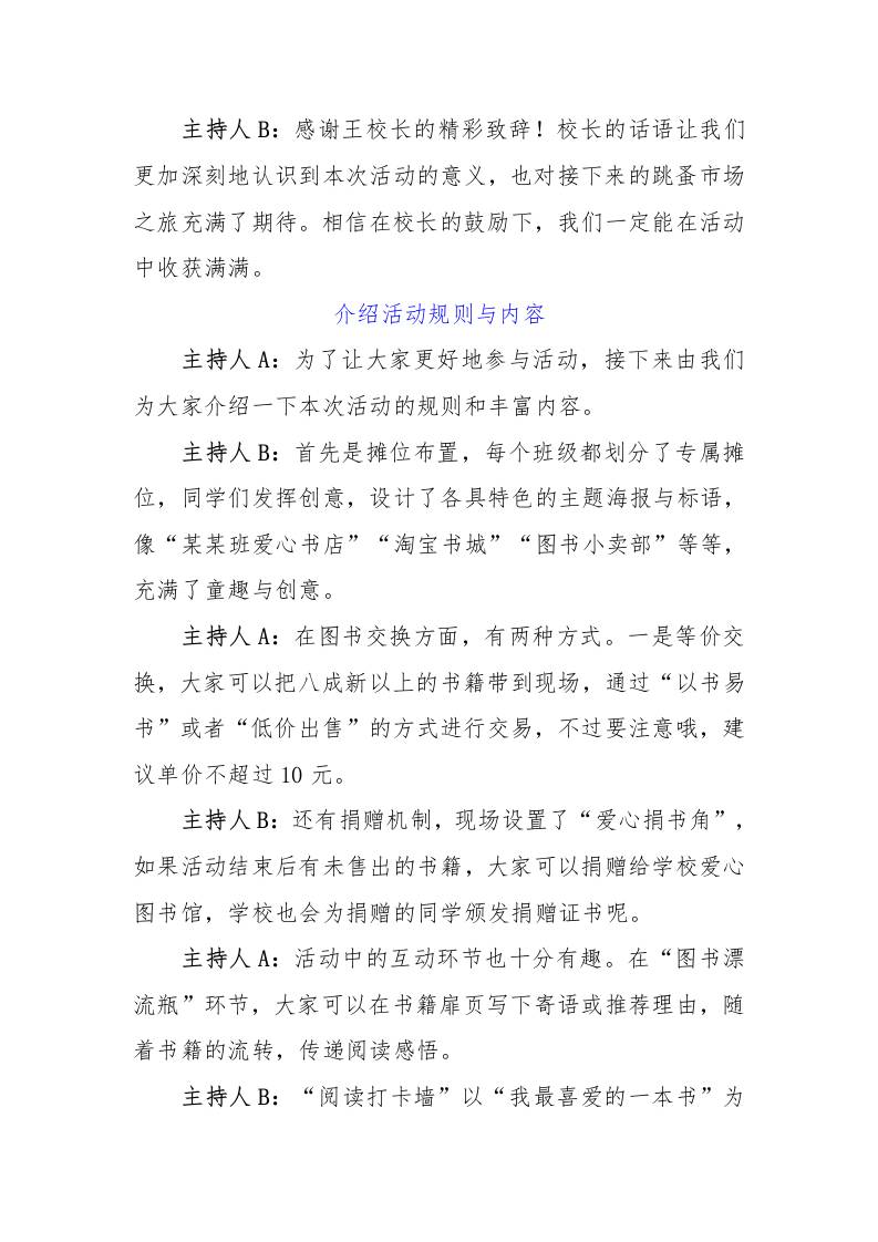3.2025年世界读书日跳蚤市场启动仪式主持稿 综合资料 水果叶子 2025-10-07 教务 资源下载下载价格0.8 下载币VIP免费升级VIP立即购买 ——预览已结束,还剩2页未读——开通会员后可免费下载高清完整文档 阅读全文